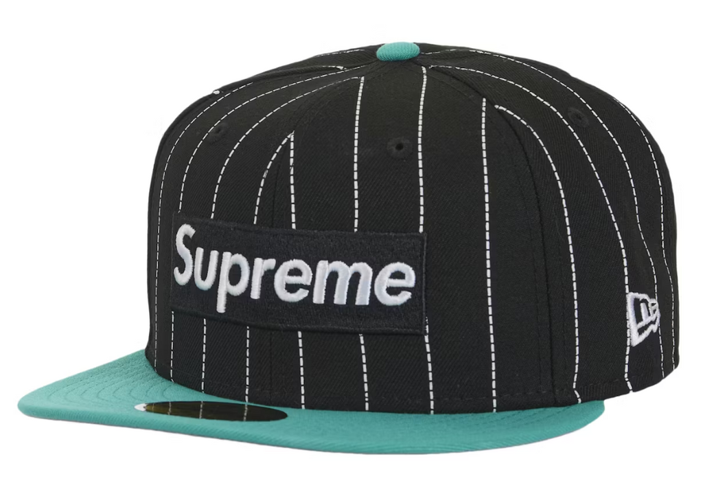 Supreme MLB Teams Box Logo New Era 59Fifty Cap Black Pinstripe